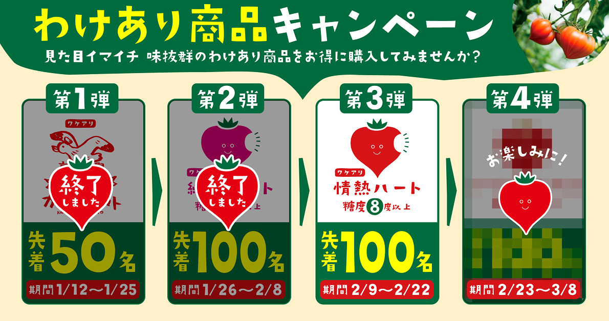 2026年度2月3日から 『かもめのトマト』が発送を開始したことをお知らせいたします。 ご注文の順を追って発送をいたしますので送品到着まで今しばらくお待ちく…